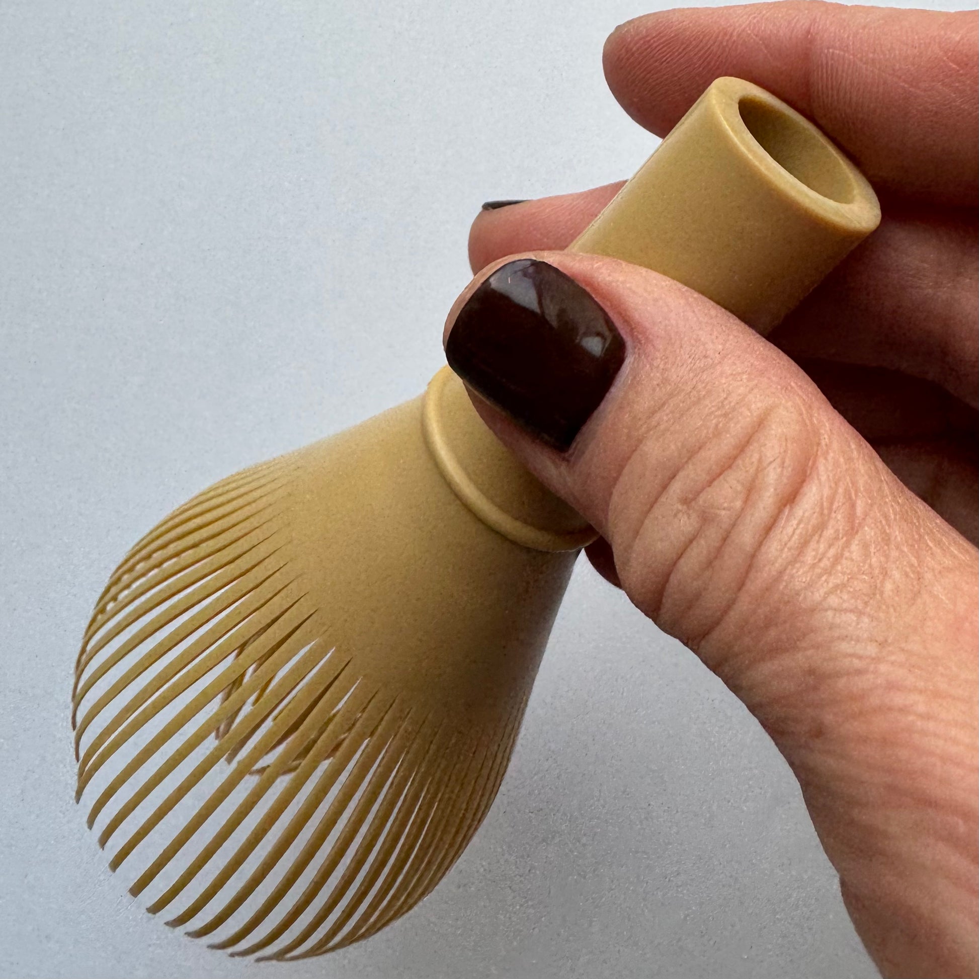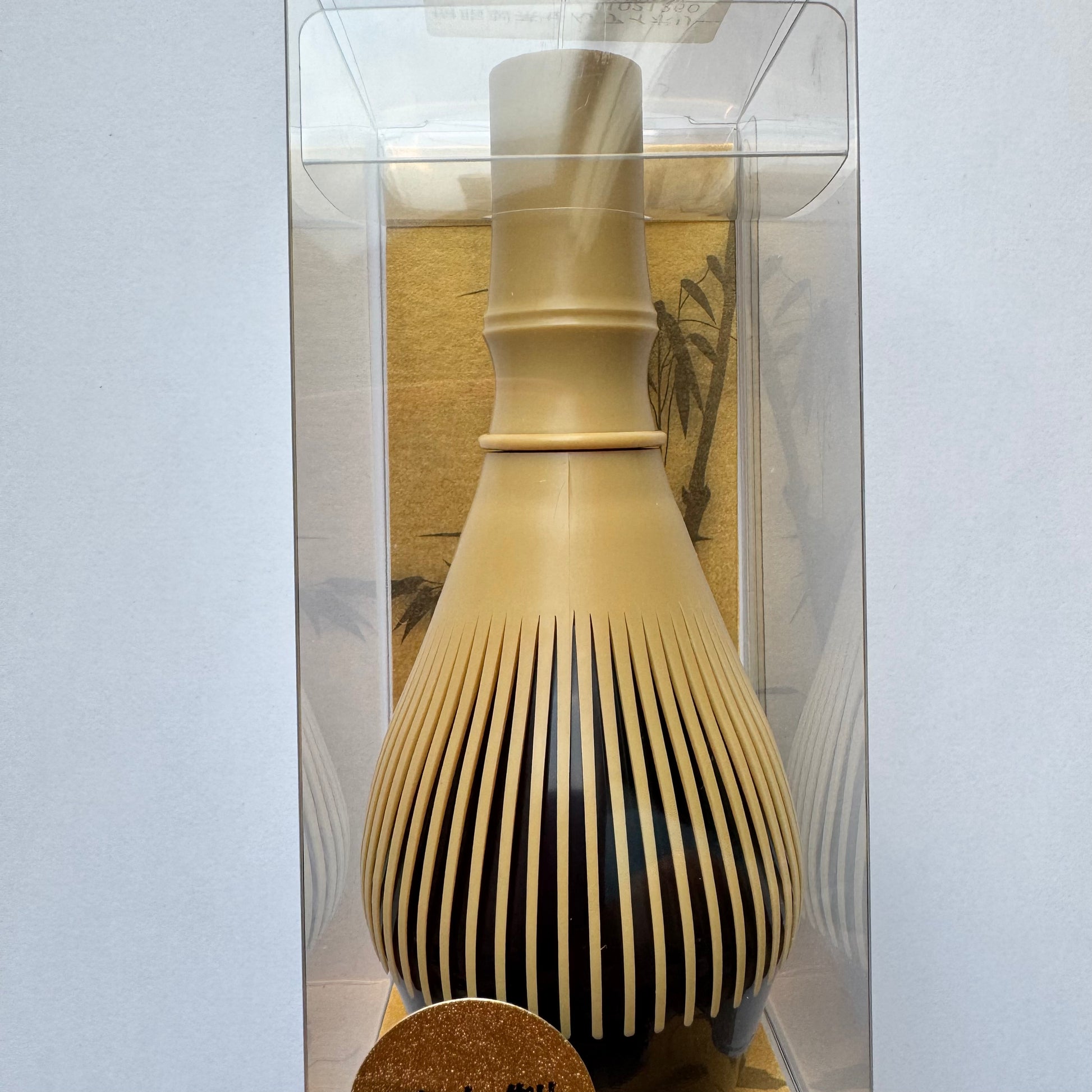 Pagaminta Japonijoje ši aukštos kokybės dervos šluotelė yra ilgaamžė ir elegantiška alternatyva tradiciniam bambukiniam chasen. Lengva ir lengvai valoma, ji ilgai išlaiko savo formą, todėl puikiai tinka tiek pradedantiesiems, tiek patyrusiems arbatos praktikos mėgėjams. Ši polipropileno plastiko šluotelė turi savo stovą, kad išlaikytų formą, išdžiūtų ir ilgai lydėtų jūsų matcha kelionėje.