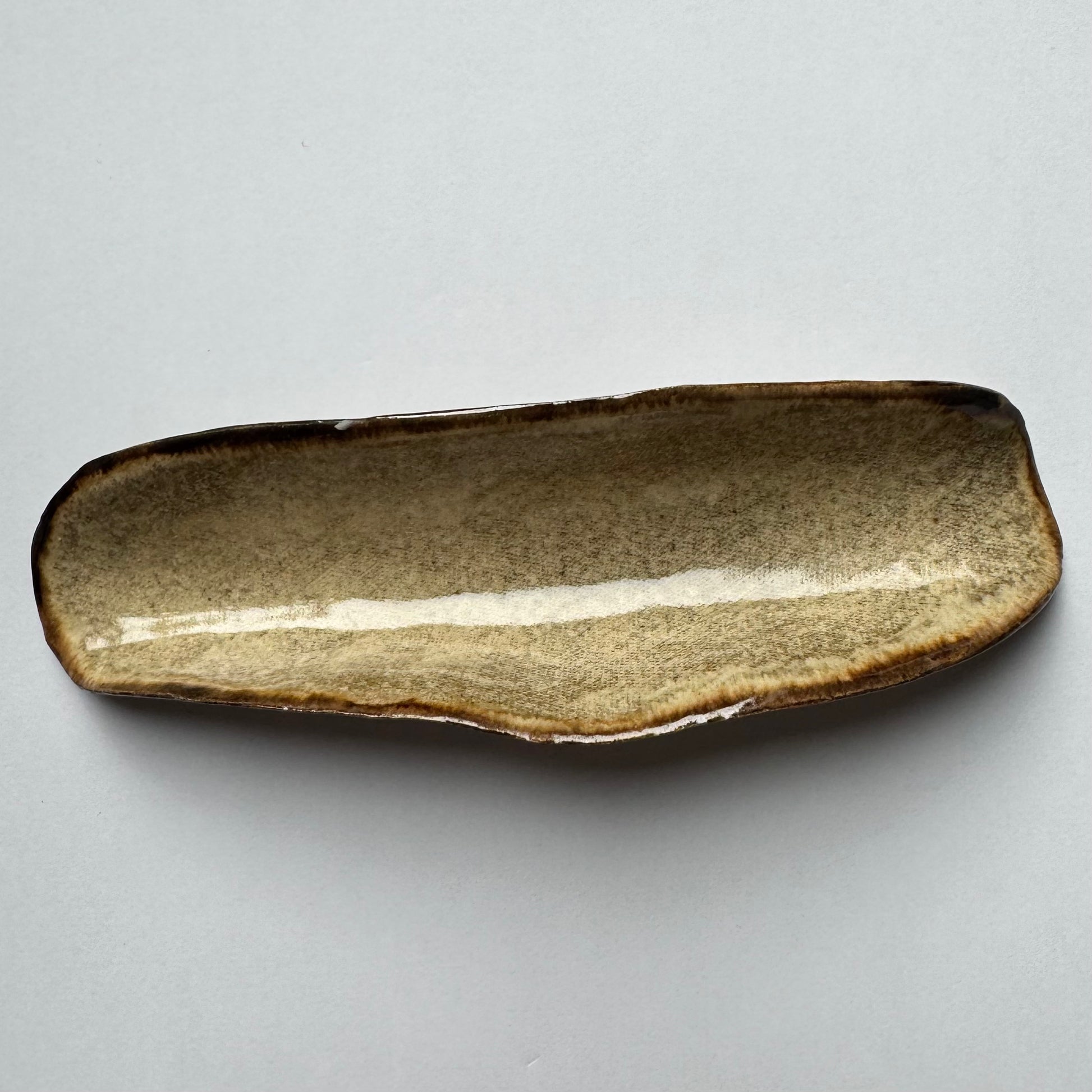 Gelsvas keramikinis samtelis biriai lapelių arbatai rudu krašteliu.
